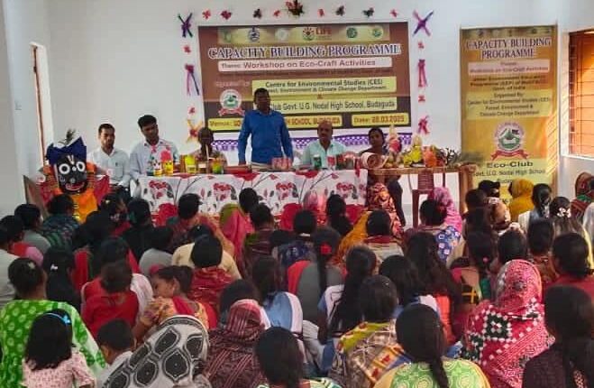 ବାଲିଗୁଡା, ତା, ୦୩/୦୪:(ସଞ୍ଜୟ କୁମାର ପାଣିଗ୍ରାହୀ): କନ୍ଧମାଳ ଜିଲ୍ଲା ବାଲିଗୁଡା ଉପଖଣ୍ଡ ଦାରିଙ୍ଗବାଡି ବ୍ଲକ ଅନ୍ତର୍ଗତ ବୁଡ଼ାଗୁଡା ନୋଡାଲ ଉଚ୍ଚ ବିଦ୍ୟାଳୟରେ ଜଙ୍ଗଲ, ପରିବେଶ ଓ ଜଳବାୟୁ ପରିବର୍ତ୍ତନ ବିଭାଗ ଆନୁକୂଲ୍ୟରେ ଦକ୍ଷତା ବୃଦ୍ଧି ନିମିତ୍ତ ଏକ ଦିବଶୀୟ ପ୍ରଶିକ୍ଷଣ ଶିବିର ଆୟୋଜନ ହୋଇଯାଇଥିଲା । ବିଦ୍ୟାଳୟର ପ୍ରଧାନ ଶିକ୍ଷକ ଶ୍ୟାମ ସୁନ୍ଦର ସାହୁଙ୍କ ଅଧ୍ଯକ୍ଷତାରେ ଅନୁଷ୍ଠିତ ଏହି କର୍ମଶାଳାରେ ପନ୍ଦରଟି ସ୍ବୟଂ ସହାୟକ ଗୋଷ୍ଠୀରୁ ପାଖାପାଖି ଏକ ଶହରୁ ଉର୍ଦ୍ଧ ପ୍ରଶିକ୍ଷାର୍ଥୀ ଅଂଶଗ୍ରହଣ କରିଥିଲେ। ବର୍ତ୍ତମାନ ସମାଜରେ ନାରୀଟିଏ ପାଇଁ ସ୍ବାବଲମ୍ବୀ ହେବା ସହ ପରିବାର ପ୍ରତିପୋଷଣ ପାଇଁ ଅନେକ ମାର୍ଗ ଉନ୍ମୁକ୍ତ ଅଛି l ପରିବେଶ ବନ୍ଧବ ଉପାଦାନ ବ୍ୟବହାର କରି ନୂଆ ବ୍ୟବହାର ଯୋଗ୍ୟ ଜିନିଷର ପ୍ରସ୍ତୁତି ଏଥିମଧ୍ୟରୁ ଅନ୍ୟତମ ବୋଲି ପ୍ରଧାନଶିକ୍ଷକ ମତପୋଷଣ କରିଥିଲେ। ମାଟିଦ୍ଵାରା ବିଭିନ୍ନ ମୂର୍ତ୍ତି, ଖେଳନା ତିଆରି, ବାଉଁଶ ଦ୍ବାରା ବିଭିନ୍ନ ଘରକରଣା ଜିନିଷ ପ୍ରସ୍ତୁତି, ଅବ୍ୟବହୃତ ପ୍ଲାଷ୍ଟିକ ଦ୍ବାରା ସୁନ୍ଦର ଉପକରଣ ତଥା ଫୁଲ ଝାଡୁ ଚାଷ ଠାରୁ ଆରମ୍ଭ କରି ବଜାରରେ ବିକ୍ରୟ ପର୍ଯ୍ୟନ୍ତ ସବୁକିଛି ପ୍ରଶିକ୍ଷାର୍ଥୀ ମାନେ ଶିଖିଥିଲେ। ଶେଷରେ ପ୍ରଶିକ୍ଷାର୍ଥୀ ମାନଙ୍କୁ ଅଂଶଗ୍ରହଣ ପ୍ରମାଣପତ୍ର ପ୍ରଦାନ କରାଯାଇଥିଲା। ଏହି କାର୍ଯକ୍ରମର ପରିଚାଳନାରେ ବିଦ୍ୟାଳୟର ଶିକ୍ଷକ ବେଣୁଧର ବେହେରା,ବାମଚନ୍ଦ୍ର ପ୍ରଧାନ,ଦିବ୍ୟସିଂ ପ୍ରଧାନ, ଦୀପକ କୁମାର କହଁର ,ଅପର୍ଣ୍ଣା ନାୟକ ଓ ସୁଚିସ୍ମିତା ପ୍ରଧାନ ପ୍ରମୁଖ ଉପସ୍ଥିତ ରହି ପରିଚାଳନାରେ ସହଯୋଗ କରିଥିଲେ l