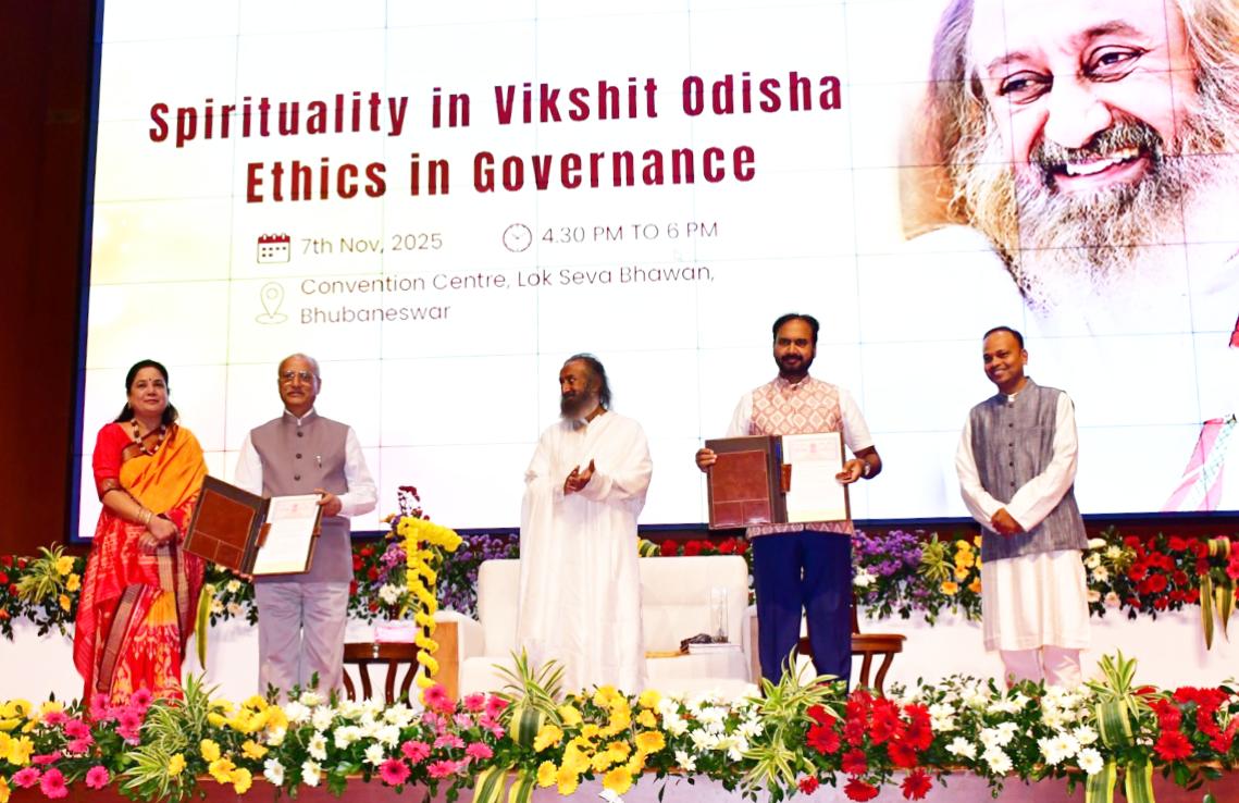 ଭୁବନେଶ୍ୱର, ୭ ନଭେମ୍ବର, ୨୦୨୫ : ପ୍ରସିଦ୍ଧ ଆଧ୍ୟାତ୍ମିକ ଗୁରୁ ତଥା ଦ ଆର୍ଟ ଅଫ ଲିଭିଂର ପ୍ରତିଷ୍ଠାତା ଗୁରୁଦେବ ଶ୍ରୀ ଶ୍ରୀ ରବି ଶଙ୍କର ଆଜି ଭୁବନେଶ୍ୱର ଲୋକସେବା ଭବନସ୍ଥିତ କନଭେନସନ ସେଣ୍ଟର ଠାରେ “ବିକଶିତ ଓଡ଼ିଶାରେ ଆଧ୍ୟାତ୍ମିକତା, ଶାସନରେ ନୀତି” ବିଷୟରେ ଏକ ପ୍ରେରଣାଦାୟକ ସମ୍ଭାଷଣ ପ୍ରଦାନ କରିଥିଲେ। ଓଡ଼ିଶା ସରକାରଙ୍କ ବରିଷ୍ଠ ଅଧିକାରୀମାନେ ଏହି କାର୍ଯ୍ୟକ୍ରମରେ ଉପସ୍ଥିତ ଥିଲେ l ଏହି ସଭାରେ ଗୁରୁ ଶ୍ରୀ ଶ୍ରୀ ରବି ଶଙ୍କର ଏକ ଅଗ୍ରଗତିଶୀଳ, ଶାନ୍ତି, ସଦଭାବନା ଓ ଭାଇଚାରାର ସମନ୍ୱୟରେ ସମାଜ ଗଢ଼ିବାରେ ଆଧ୍ୟାତ୍ମିକତା ଓ ନୀତିମୂଲ୍ୟର ଆବଶ୍ୟକତା ଉପରେ ଗୁରୁତ୍ୱ ଦେଇଥିଲେ ।