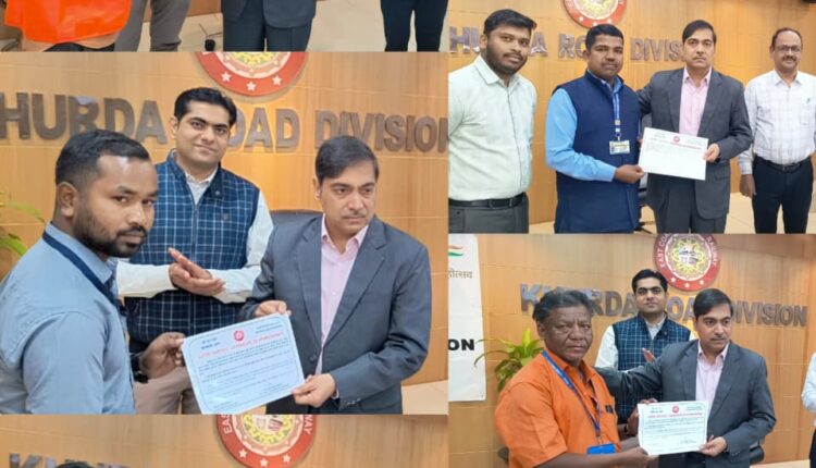 ଭୁବନେଶ୍ୱର / ଖୋର୍ଦ୍ଧା ରୋଡ୍, ୨୯.୧୨.୨୦୨୫: କାର୍ଯ୍ୟ ସମୟରେ ନିରାପତ୍ତା ପ୍ରତି ଅନୁକରଣୀୟ ସମର୍ପଣ, ସତର୍କତା ଏବଂ ପ୍ରତିବଦ୍ଧତାର ସ୍ୱୀକୃତି ସ୍ୱରୂପ; କର୍ତ୍ତବ୍ୟ ପାଳନ ସମୟରେ ଉତ୍କୃଷ୍ଟ କାର୍ଯ୍ୟ ପାଇଁ ଖୋର୍ଦ୍ଧା ରୋଡ୍ ରେଳ ମଣ୍ଡଳର ମଣ୍ଡଳ ରେଳ ପ୍ରବନ୍ଧକ ଶ୍ରୀ ଆଲୋକ ତ୍ରିପାଠି ସାତ ଜଣ ରେଳ କର୍ମଚାରୀଙ୍କୁ ସମ୍ମାନିତ କରିଛନ୍ତି ।