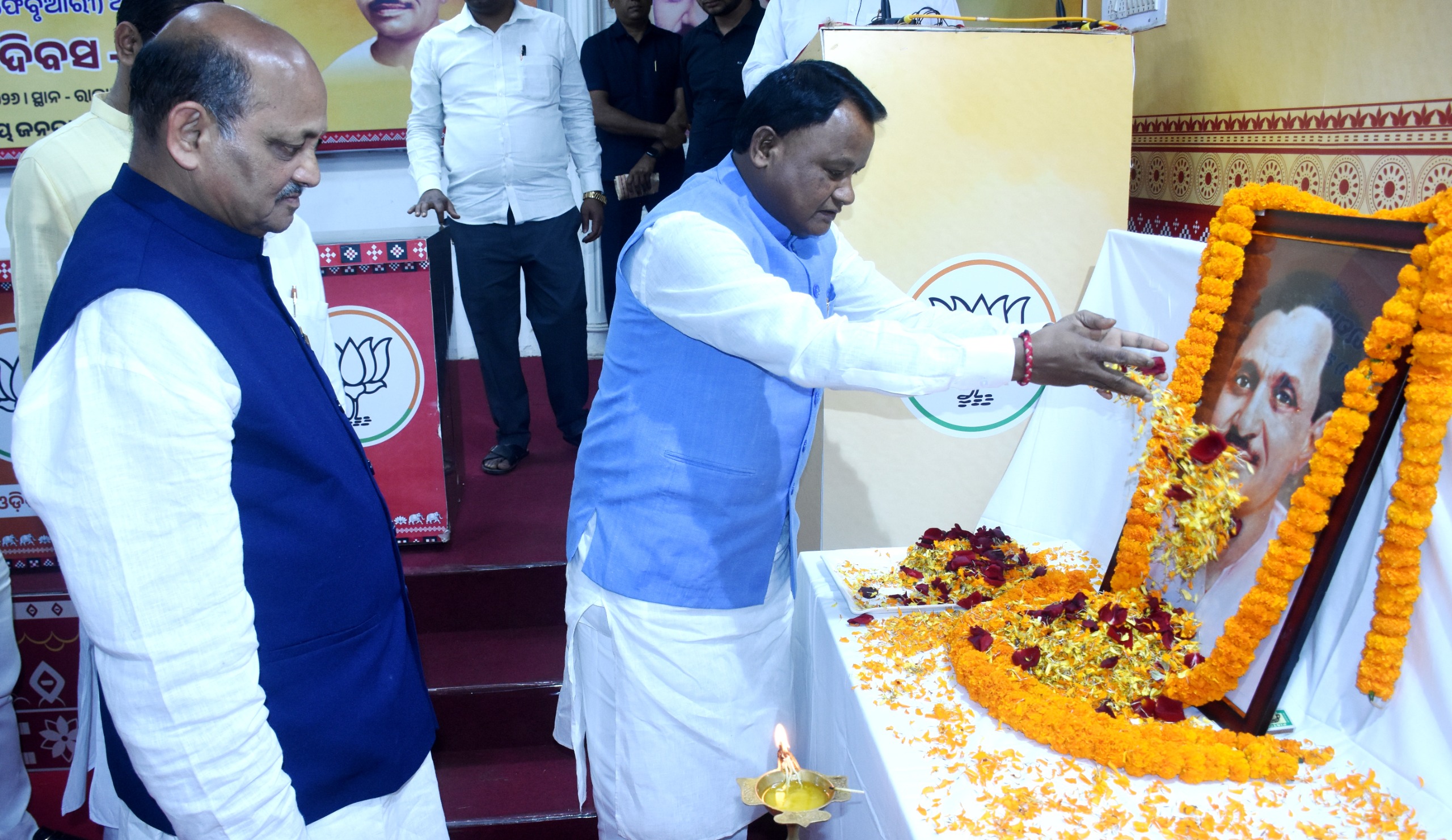 ଆୟୋଜିତ ଏହି କାର୍ଯ୍ୟକ୍ରମରେ ରାଷ୍ଟ୍ରୀୟ କାର୍ଯ୍ୟକାରିଣୀ ସଦସ୍ୟ ତଥା ପୂର୍ବତନ ରାଜ୍ୟ ସଭାପତି ଶ୍ରୀ ସମୀର ମହାନ୍ତି, ପୂର୍ବତନ ମନ୍ତ୍ରୀ ଶ୍ରୀ ଅରବିନ୍ଦ ଢାଲି, ଟିଟଲାଗଡ ବିଧାୟକ ଶ୍ରୀ ନବୀନ କୁମାର ଜୈନ୍, ରାଜ୍ୟ ଉପସଭାପତି ଡ. ଯତୀନ ମହାନ୍ତି, ଶ୍ରୀ ବିଷ୍ଣୁ ଦାସ, ରାଜ୍ୟ ସାଧାରଣ ସଂପାଦକ ଶ୍ରୀ ଶାରଦା ପ୍ରସାଦ ଶତପଥୀ, ଶ୍ରୀମତି ପୂର୍ଣ୍ଣିମା ପ୍ରିୟଦର୍ଶନୀ ନାୟକ, ରାଜ୍ୟ ସଂପାଦିକା ଶ୍ରୀମତି ଡ. ପ୍ରିତୀପ୍ରତିଭା ଭୋଳ, ଶ୍ରୀମତି ପିଙ୍କି ପ୍ରଧାନ, ଶ୍ରୀମତି ସ୍ମିତା ପ୍ରଧାନ, ବିଜେପି ବାର୍ତା ସଂପାଦକ ଶ୍ରୀ ପୂର୍ଣ୍ଣଚନ୍ଦ୍ର ମଲ୍ଲିକ, ବରିଷ୍ଠ ନେତା ଶ୍ରୀ ଭୁବନାନନ୍ଦ ତ୍ରିପାଠୀ, ଭୁବନେଶ୍ୱର ଜିଲ୍ଲା ସଭାପତି ଶ୍ରୀ ନିରଞ୍ଜନ ମିଶ୍ରଙ୍କ ସମେତ ଅନ୍ୟ ନେତୃବୃନ୍ଦ ଓ କାର୍ଯ୍ୟକର୍ତା ପ୍ରମୁଖ ଉପସ୍ଥିତ ରହି ଶ୍ରଦ୍ଧାଞ୍ଜଳୀ ଜ୍ଞାପନ କରିଛନ୍ତି । ସେହିପରି ଆଜି ରାଜ୍ୟବ୍ୟାପୀ ସମସ୍ତ ବୁଥ୍ ଏବଂ ଜିଲ୍ଲା ସ୍ତରରେ ବିଭିନ୍ନ କାର୍ଯ୍ୟକ୍ରମ କରାଯାଇ ପଣ୍ଡିତ ଦୀନଦୟାଲଜୀଙ୍କୁ ଶ୍ରଦ୍ଧାଞ୍ଜଳି ଅର୍ପଣ କରାଯାଇଛି ।