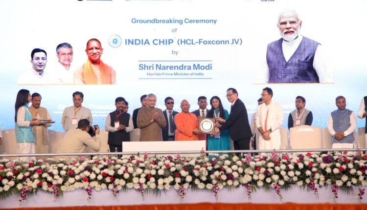 ମାନ୍ୟବର ପ୍ରଧାନମନ୍ତ୍ରୀ ଶ୍ରୀ ନରେନ୍ଦ୍ର ମୋଦୀ ଜେୱର ଠାରେ ଇଣ୍ଡିଆ ଚିପ୍ ପ୍ରାଇଭେଟ୍ ଲିମିଟେଡ୍ ର ଭିତିପ୍ରସ୍ତର ସ୍ଥାପନ କରିଛନ୍ତି