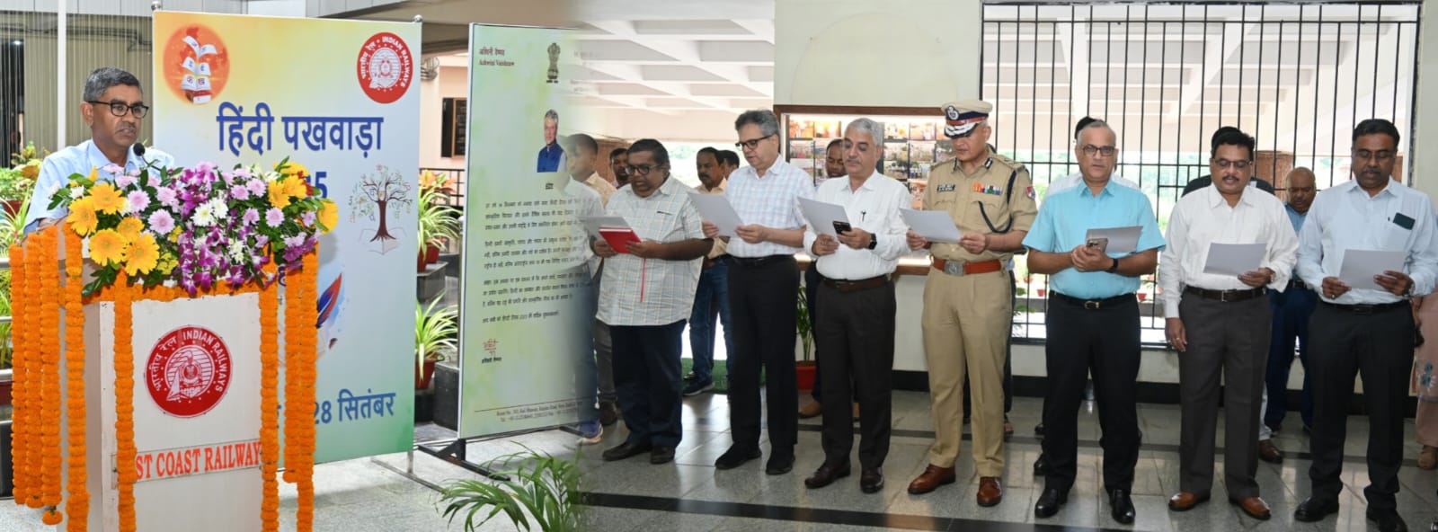 ପୂର୍ବ ତଟ ରେଳପଥ 14 ସେପ୍ଟେମ୍ବରରୁ 28 ସେପ୍ଟେମ୍ବର 2025 ପର୍ଯ୍ୟନ୍ତ ହିନ୍ଦୀ ପଖୱାଡା – 2025 ପାଳନ ଅତ୍ୟନ୍ତ ଉତ୍ସାହର ସହିତ ଆରମ୍ଭ କରିଛି। ଦୈନନ୍ଦିନ ସରକାରୀ କାର୍ଯ୍ୟରେ ହିନ୍ଦୀର ପ୍ରଗତିଶୀଳ ବ୍ୟବହାରକୁ ପ୍ରୋତ୍ସାହିତ କରିବା ଏବଂ ଦେଶର ସରକାରୀ ଭାଷା ଭାବରେ ଏହାର ଗୁରୁତ୍ୱ ବିଷୟରେ ସଚେତନତା ପ୍ରସାର କରିବା ପାଇଁ ଏହି ଦୁଇପାକ୍ଷିକ କାର୍ଯ୍ୟକ୍ରମ ଆୟୋଜନ କରାଯାଉଛି।